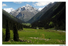 Ala Archa National Park - Situato in una pittoresca gola l'Ala Archa National Park dista 40 km da Bishkek. E 'un luogo popolare per l'escursionismo, lo sci e l'alpinismo compresi l'escursioni a più di 20 ghiacciai. Si estende su 200 km ² - valli per lo più di boschi, cascate e fiumi ricchi di trote. L'altitudine varia dai 1500 ai 4895m punto più alto (Peak Semenov Tien Shanskii). Sono presenti diverse specie fasunistiche e arboree rare . Tra gli alberi è tradizionalmente venerato il ginepro, mentre i prati di montagna sono l'habitat di stambecchi, cervi e marmotte. L' Ala Archa National Park è uno dei pochi santuari rimasti della rara specie di leopardo delle nevi . Sono tracciati vari percorsi di trekking ; si può camminare lungo il fiume (il percorso più semplice), salire sino alla cascata di Sai Ak o al cimitero degli alpinisti. |
