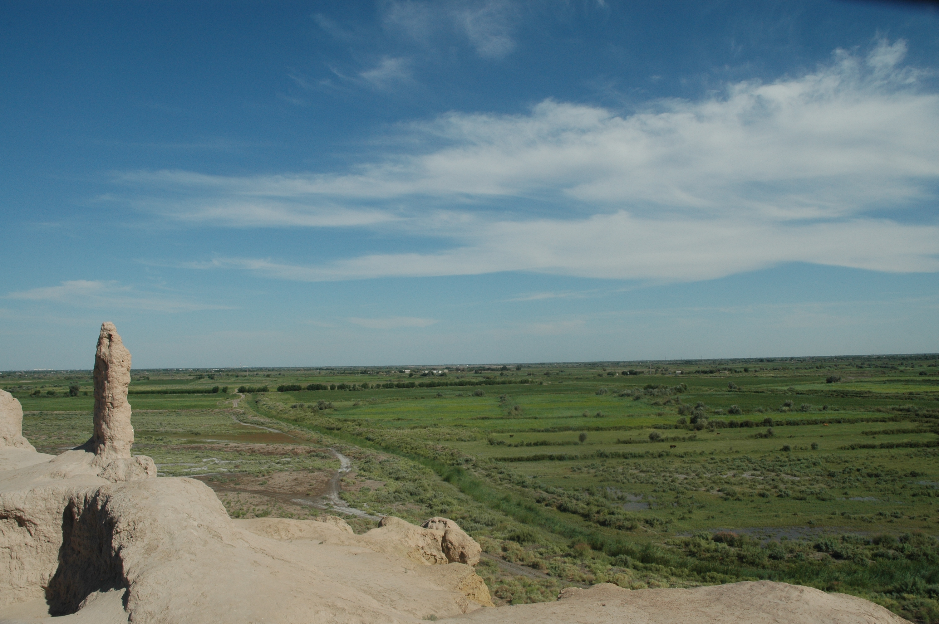 | Ayaz-kala : Le rovine di Ayyaz Kala, Toprak Kala, Koy Kryglan Kala costituiscono una serie di caratteristiche fortezze e templi fortificati con mura di fango, edificati, a protezione della regione del Khorezm (la storica corasmia ) , ai margini del deserto del Kizilkum. L’Ayaz Kala Yurta Camp situato in una suggestiva posizione nel deserto presso l’omonimo lago, offre danze folkloristiche, corse in cammello e fuochi di bivacco . Nei pressi visitabile anche la riserva di Badai-Tugai, uno degli ultimi tratti di foresta tugai tipica delle valli fluviali dell’Asia Centrale |