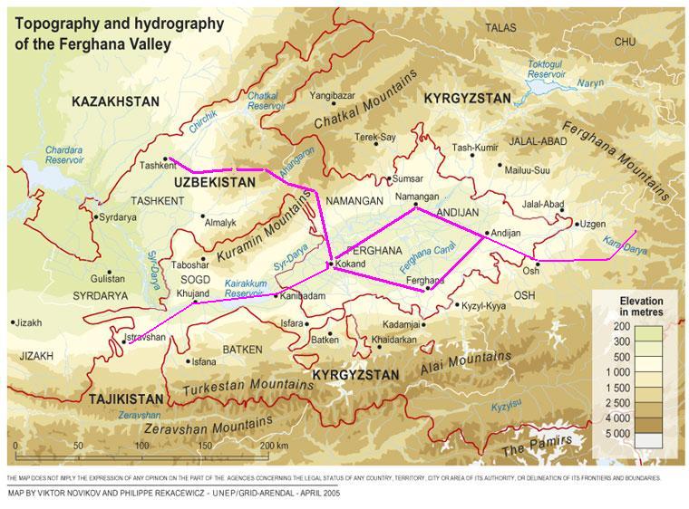 Ferghana Valley . La Ferghana valley occupa una vasta area, chiusa tra le montgne del Tian Shan e i primi contrafforti del Pamir.E’ di gran lunga l’are più fertile e la più densamente popolata dell’intera regione. Kokand è una delle più antiche città dell’ Uzbekistan ed è sita nella parte occidentale della Ferghana valley. Kokand fu la capitale del Kokand Khanato dal 1709-1876, che includeva gran parte del presente Uzbekistan, la parte meridionale del Kazakhstan, il Kyrghyzstan, il Tadjikistan e parte della China occidentale. Kokand è considerato il secondo centro religioso dopo Bukhara in Asia Centrale: ci sono 35 madrase e centinaia di moschee; a Kokand si visita il Khudoyar Khan’s Palace, la Juma Mosquea e il Dahmai Shahon (mausoleo dei khan). Le altre città principali sono Andjian, Namangan e Ferghana |